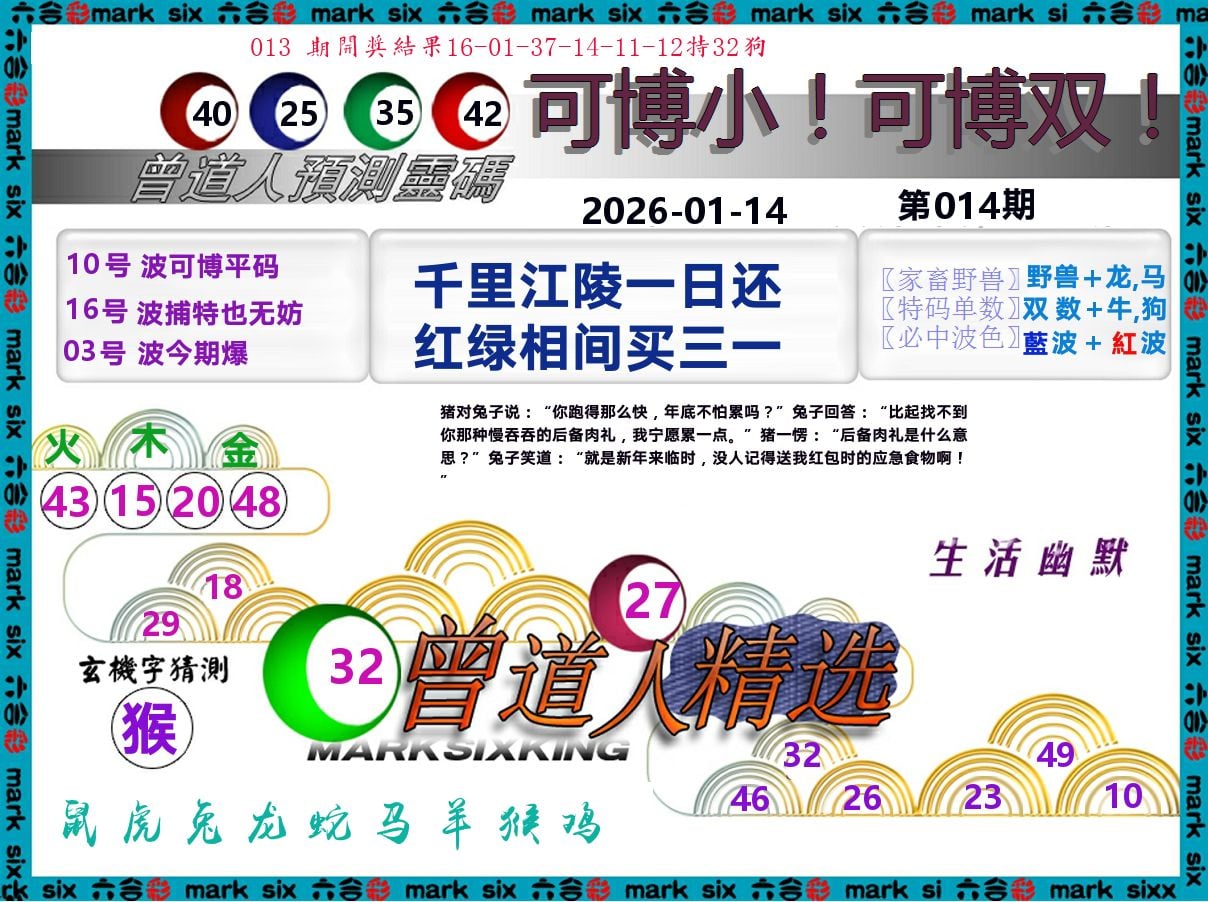014期【鸡马羊猴虎兔鼠龙】开:??准